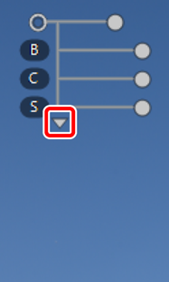 - [HCV]: geef schuifbalken weer voor [Helderheid] ([B]), [Contrast] ([C]) en [Verzadiging] ([S]).
