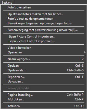 - Exporteer Eigen Picture Controls die op NX Studio zijn opgeslagen als bestanden (0 Eigen Picture Control bestanden exporteren).