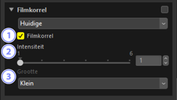 - Pas de sterkte van de korrelige textuur aan. Kies hogere waarden voor een ruwer en korreliger effect.