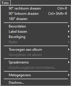 - [IPTC-gegevens kopiëren]/[IPTC-gegevens plakken]: kopieer of plak IPTC-gegevens van of naar de huidige foto.