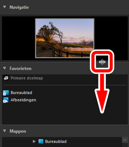 Sleep de randen tussen de subpaletten [Navigatie], [Favorieten], [Mappen] en [Albums] om hun formaat aan te passen.