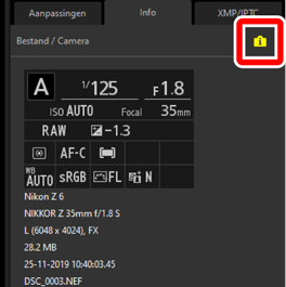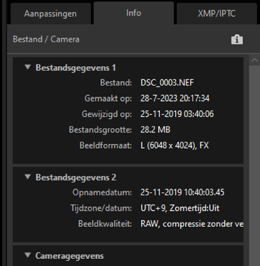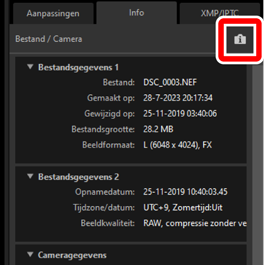 - Toont beeldinformatie en aanpassingen voor de geselecteerde foto's.