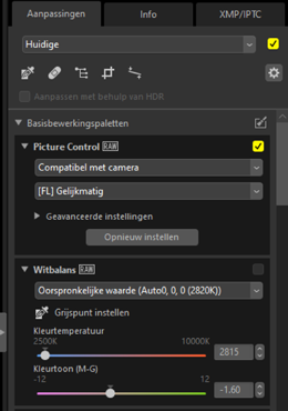 Het Aanpassingen/Info-palet