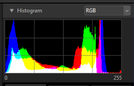 Het histogram voor de huidige foto. Klik op de
