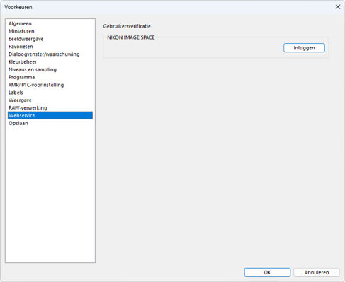 Inloggen op NIKON IMAGE SPACE