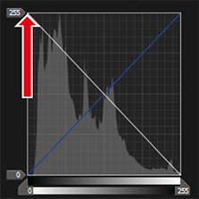 Перетащите нижний маркер кривой тона в среднюю область графика на панели [Уровни и искажения].