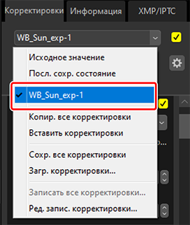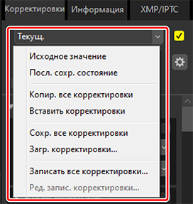 - Все текущие корректировки сохраняются и добавляются как параметр в раскрывающееся меню [Корректировки].