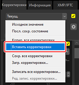 - вставить (0 Копирование корректировок в другие снимки),