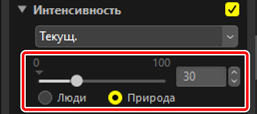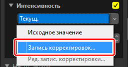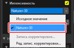Текущие настройки можно добавить в меню каждого инструмента. Затем настройки можно выбрать из меню и применить к другим снимкам. Далее в качестве примера используется инструмент [Интенсивность].