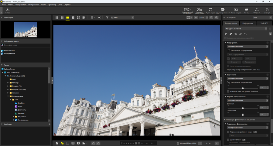 Дважды щелкните внутри кадрирования или щелкните кнопку [Применить] на панели «Корректировки», чтобы кадрировать изображение.