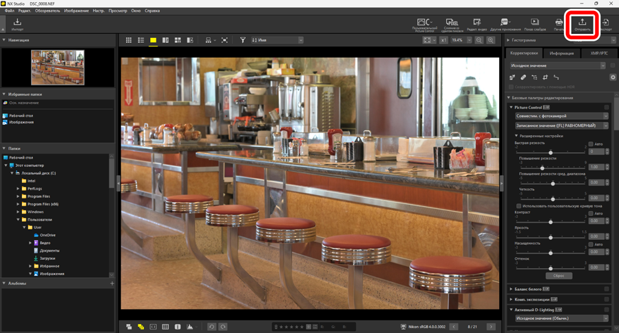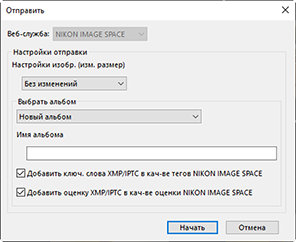 - Отправьте снимки в NIKON IMAGE SPACE с выбранными настройками.