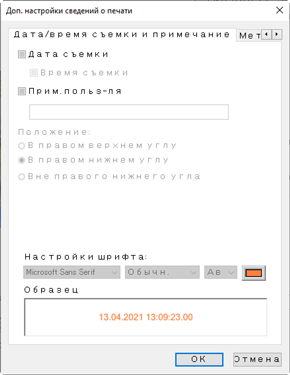 - [Настройки шрифта]: выберите шрифт, стиль, размер шрифта и цвет, используемый для печати отметки даты/времени.