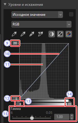 - Щелкните эту кнопку, а затем щелкните снимок, чтобы выбрать цвета для пикселя под курсором. Гамма для каналов [Красн.], [Зелен.] и [Син.] будет настроена так, чтобы выровнять значения RGB для выбранного пикселя.