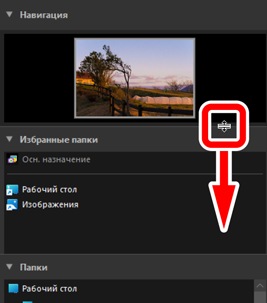 Перетащите границы между дополнительными панелями [Навигация], [Избранные папки], [Папки] и [Альбомы], чтобы изменить их размер.