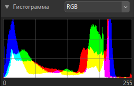 Гистограмма текущего снимка. Чтобы просмотреть или скрыть гистограмму, щелкните кнопку