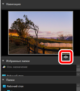 Дополнительные панели [Навигация], [Избранные папки], [Папки] и [Альбомы] можно показать или скрыть, щелкнув кнопки