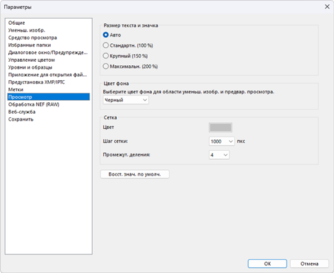 - Выберите цвет фона для средства просмотра изображений и для ленты кадров, режимов «2/4-изображения» и «До и после».