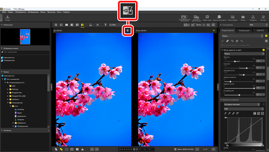) на панели «До», можно обновить отображение, показав текущее состояние снимка. Это может быть полезно сделать, прежде чем переходить к дополнительным корректировкам.