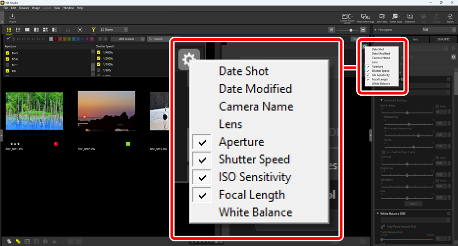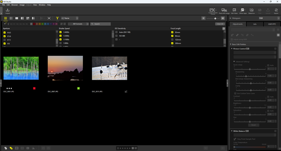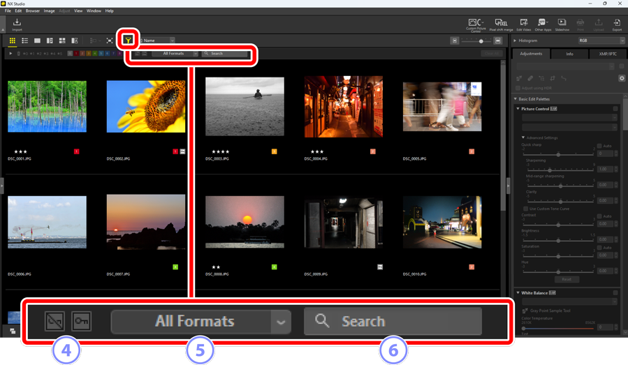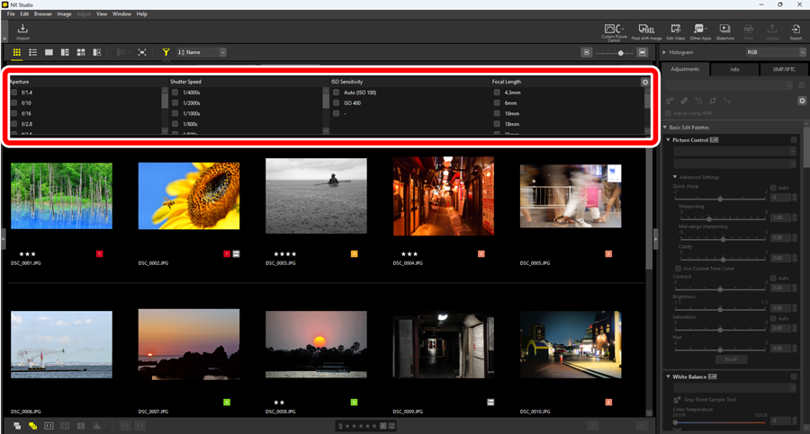 - Filtrera bilder efter betyg (0 Betygsätta bilder).