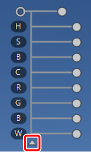 Du kan klicka på trekanten längst ner eller ovanför reglagen för att växla mellan de aktuella färgmodellerna ([BCS], [RGB] eller [HSB]) och [All (Alla)].