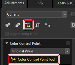 Verktyget [Color Control Point (Färgkontrollpunkt)] i justeringspaletten