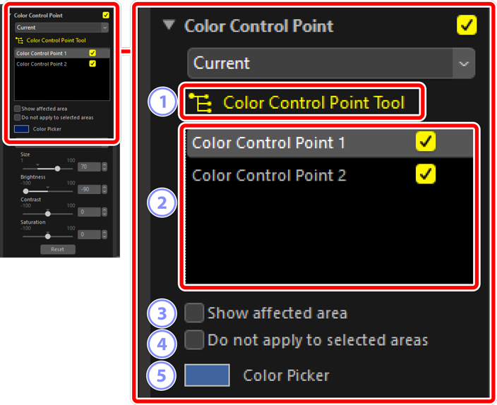 - Flera kontrollpunkter kan läggas till i varje bild. Upprepa steg 3 till 5 för att lägga till färgkontrollpunkter enligt behov.