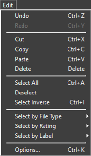 Flytta den aktuella bilden eller mappen till papperskorgen (eller i macOS till Soptunnan). Om du väljer detta alternativ när en mapp har valts i filhanterarpalettens lista [Favorite Folders (Favoritmappar)] tas den valda mappen bort från favoritlistan.
