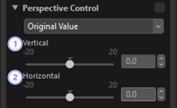 Justera perspektivet horisontellt eller vertikalt med värden från –20 till +20.