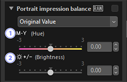 [Portrait impression balance (Balans för porträttåtergivning)] är inte tillgängligt om: