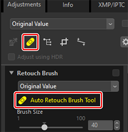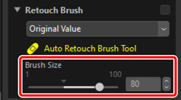 ) för att aktivera retuscheringspenseln. [Brush Size (Penselstorlek)]