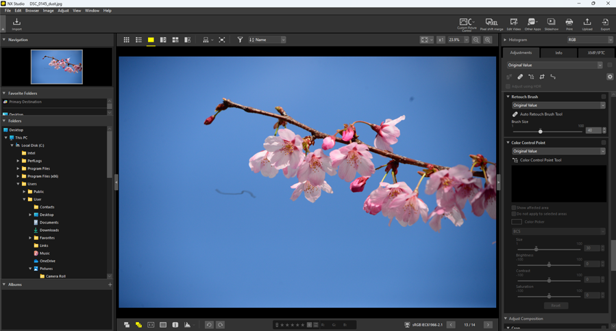Retuscheringspenseln kopierar data från omgivande områden av bilden automatiskt och kopierar dem över defekten.