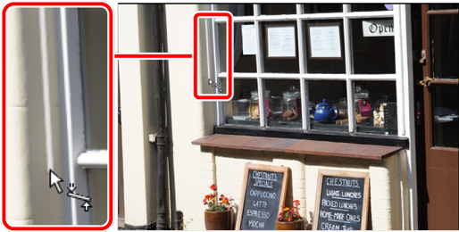 Dra markören parallellt med en referenslinje i bilden. I detta exempel fungerar fönstrets ram som referenslinje.