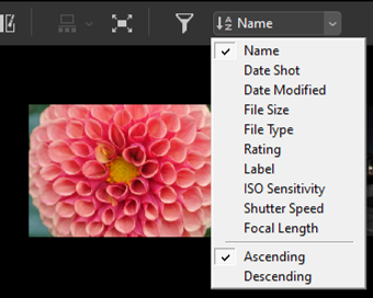 Sortera miniatyrer i visningsområdet eller bildbandet.