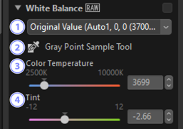 Justera vitbalans. Observera att detta verktyg endast är tillgängligt med RAW-bilder och sammanfogade pixelförskjutningsbilder.