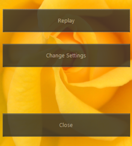 En lista över alternativ visas när bildspelet avslutas. Du kan upprepa bildspelet eller ändra inställningarna.