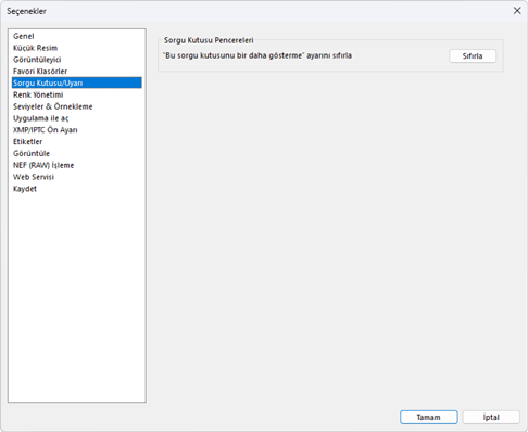 - [Bu sorgu kutusunu bir daha gösterme] onay kutularının tüm diyaloglar için sıfırlamak için [Sıfırla] öğesine tıklayın.