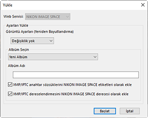 - Seçilen ayarlarda resimleri NIKON IMAGE SPACE’e yükleyin.
