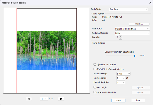 - [Tam Sayfa]: Her sayfaya bir resim yazdırın.