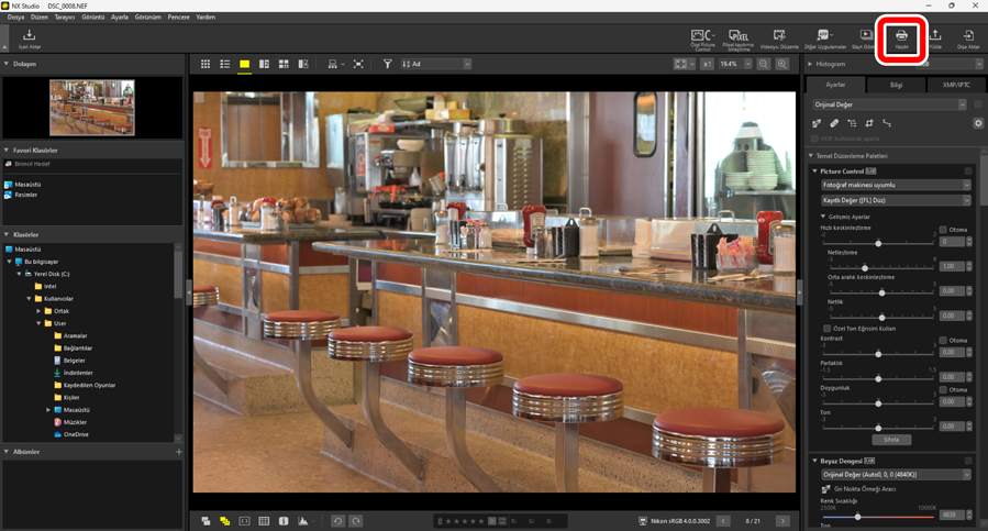 Resimleri bilgisayara bağlı bir yazıcıda yazdırmak için resimleri seçin ve araç çubuğundaki [Yazdır] öğesine tıklayın.