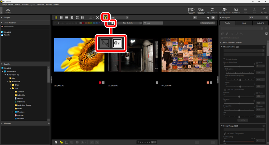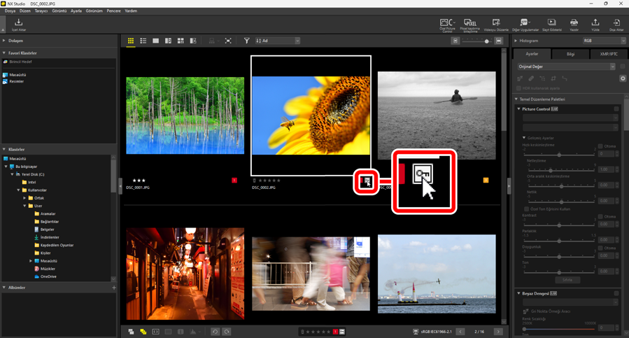 Korumalı resimler silinemez veya yeniden adlandırılamaz. Fotoğraf makinesi kullanılarak koruma altına alınan resimler NX Studio’da korumalıdır.
