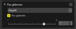 Daha fazla pus giderme etkisi için daha yüksek değerler seçin.