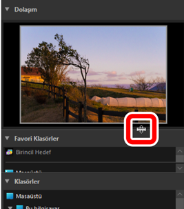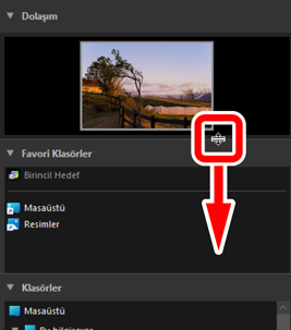 Boyutlarını ayarlamak için [Dolaşım], [Favori Klasörler], [Klasörler] ve [Albümler] alt paletleri arasındaki sınırları sürükleyin.