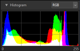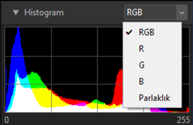 Geçerli resim için histogram. Histogramı görüntülemek veya gizlemek için