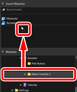 Klasörleri [Klasörler] listesinden sürükleyerek favorilere ekleyin.