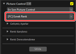 Dikkat: “Esnek Renk”e Dayalı Özel Picture Control’ler
