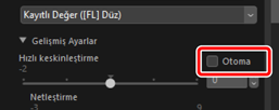 - [Netleştirme]: Küçük kontrast alanlarına keskinleştirme uygulayın.