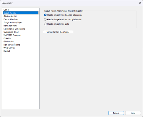 - [Klasör simgelerini ilk önce görüntüle]: Alt klasörler, resimlerden önce listelenir.