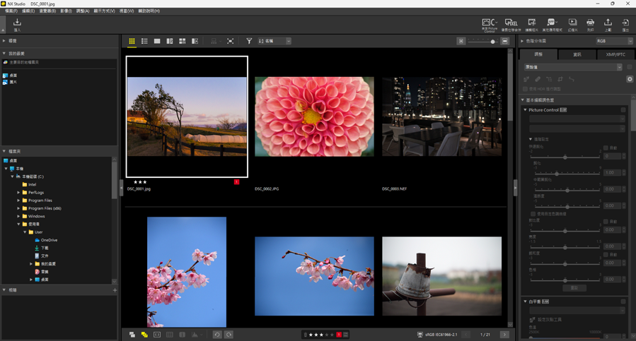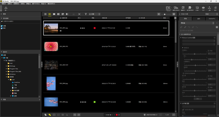 列出所選檔案夾中的照片。可按照檔案名稱、標籤或其他標準對照片排序。
