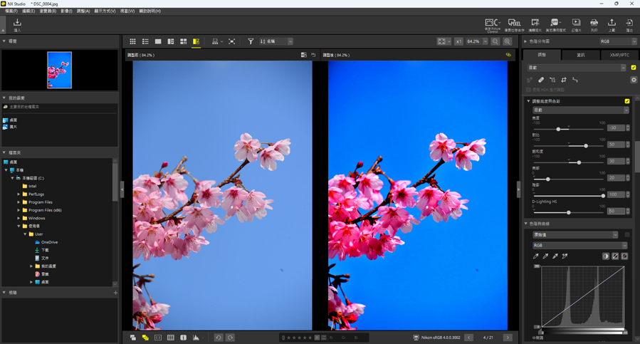 :顯示於使用 Capture NX 2 進行了增強的照片上。