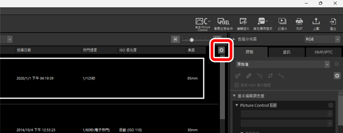 - 顯示在以 RAW + JPEG 或 RAW + HEIF 格式拍攝的照片上。